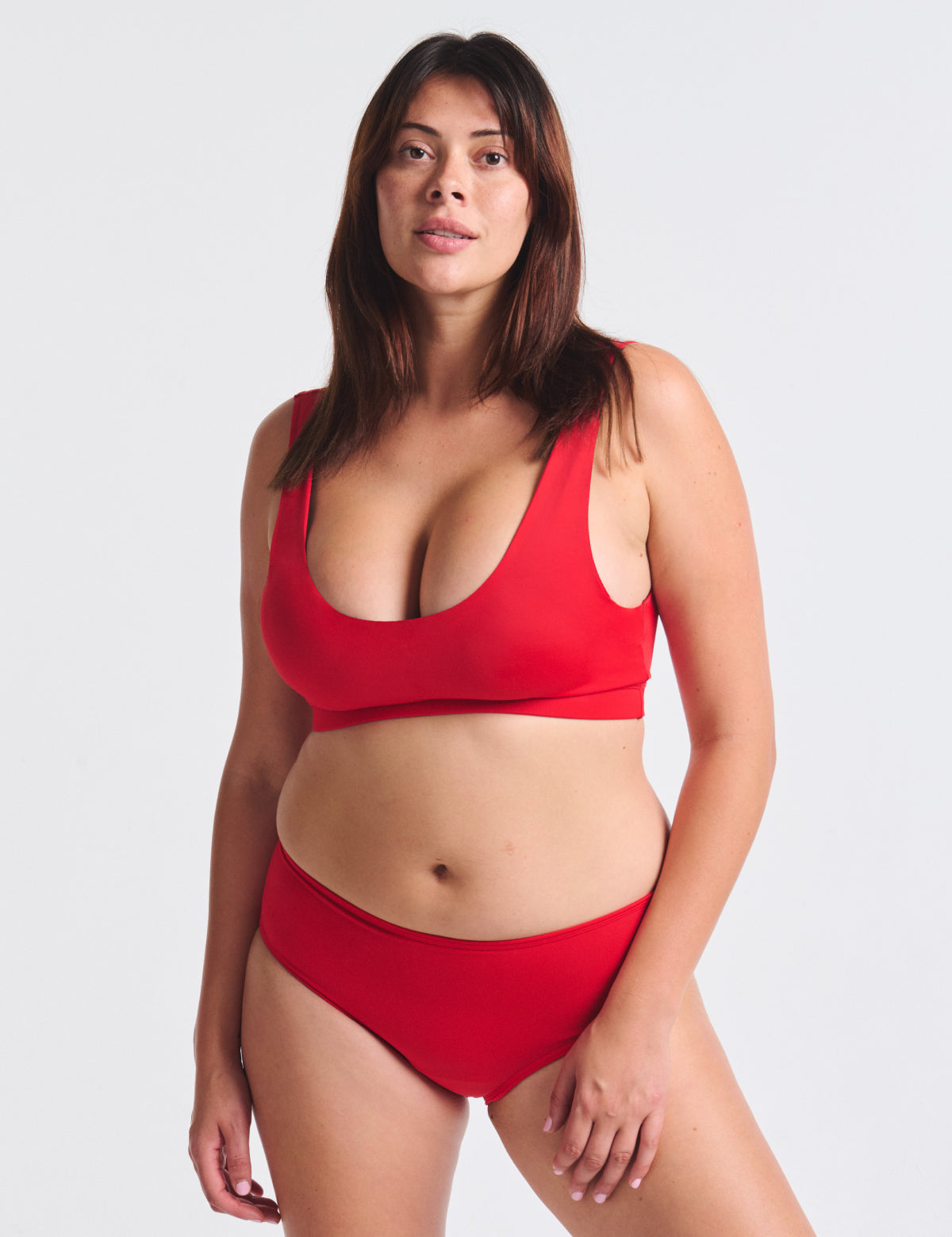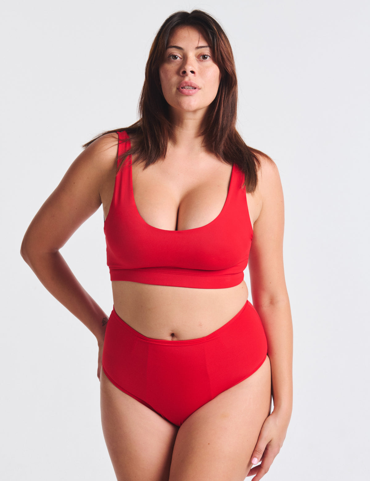 Slip da Costume da Bagno Mestruale Modellante Rosso (A Vita Alta)