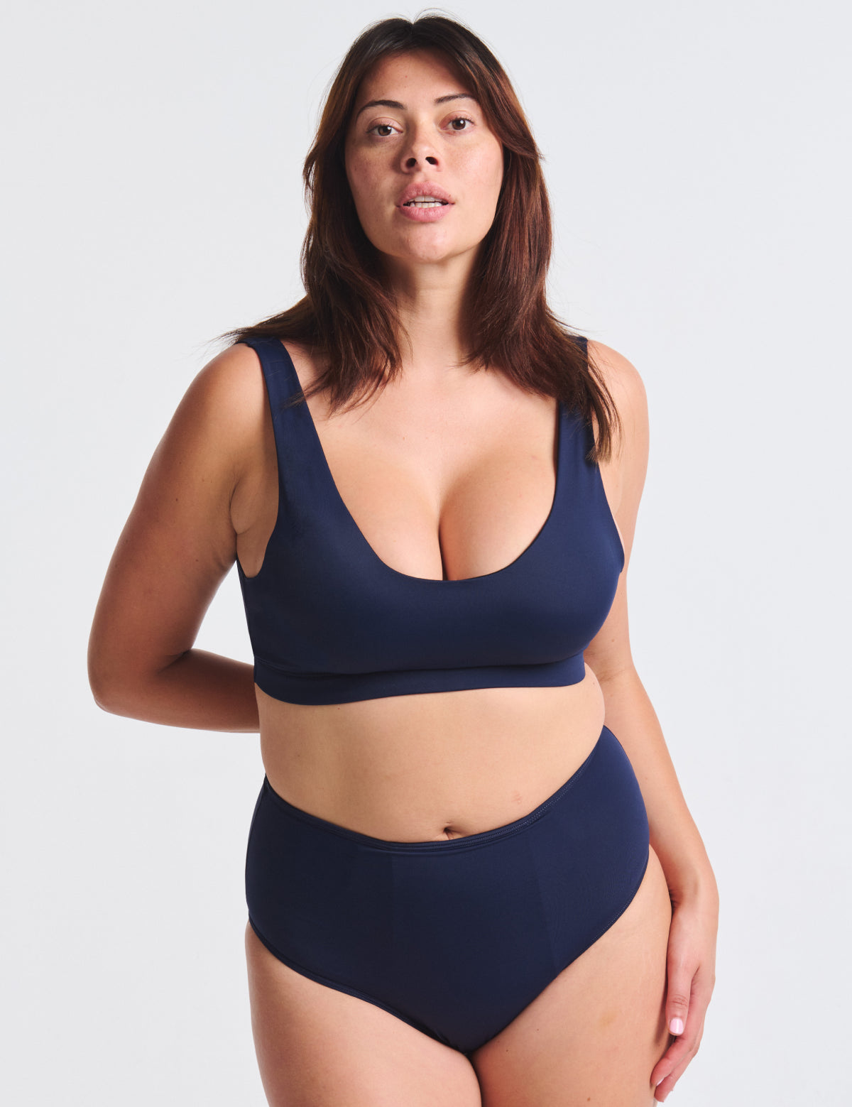 Slip da Costume da Bagno Mestruale Modellante Blu Marino (A Vita Alta)