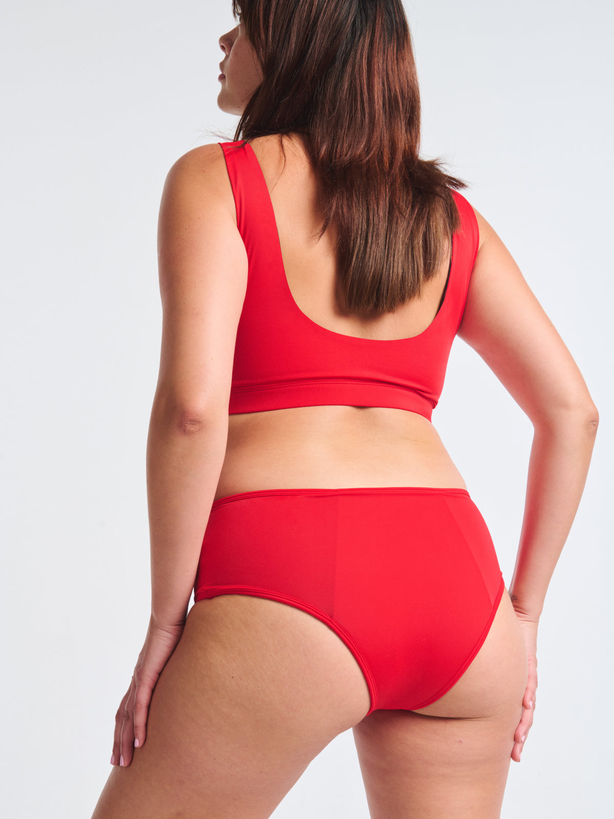 REPEAT propone il suo slip bikini mestruale per tutti i flussi, con un taglio shorty coprente e in un rosso vibrante, per offrire la soluzione efficace, confortevole e alla moda che la tua adolescente merita per godersi appieno le sue giornate al mare o in piscina, con o senza ciclo.