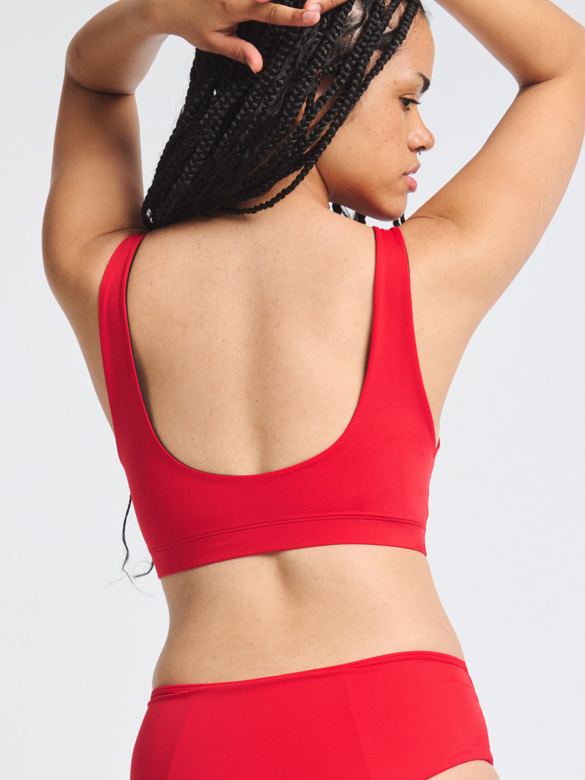 REPEAT propone il suo famoso top bikini in un rosso vibrante per offrire la soluzione coprente, confortevole e alla moda che la tua adolescente merita in vacanza quest’estate.